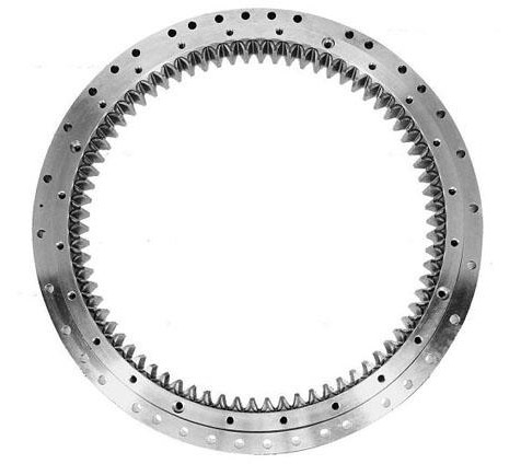 單排四點(diǎn)接觸球式回轉(zhuǎn)支承由兩個(gè)座圈組成,結(jié)構(gòu)緊湊,重量輕,鋼球與圓弧滾道四點(diǎn)接觸,能同時(shí)承受軸向力,徑向力和傾翻力矩,回轉(zhuǎn)式輸送機(jī),焊接操作機(jī),中小型起重機(jī)和挖掘機(jī)等工程機(jī)械均可選用。
