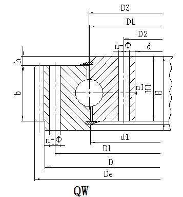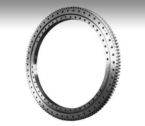 單排四點(diǎn)接觸球式回轉(zhuǎn)支承由兩個(gè)座圈組成,結(jié)構(gòu)緊湊,重量輕,鋼球與圓弧滾道四點(diǎn)接觸,能同時(shí)承受軸向力,徑向力和傾翻力矩,回轉(zhuǎn)式輸送機(jī),焊接操作機(jī),中小型起重機(jī)和挖掘機(jī)等工程機(jī)械均可選用。